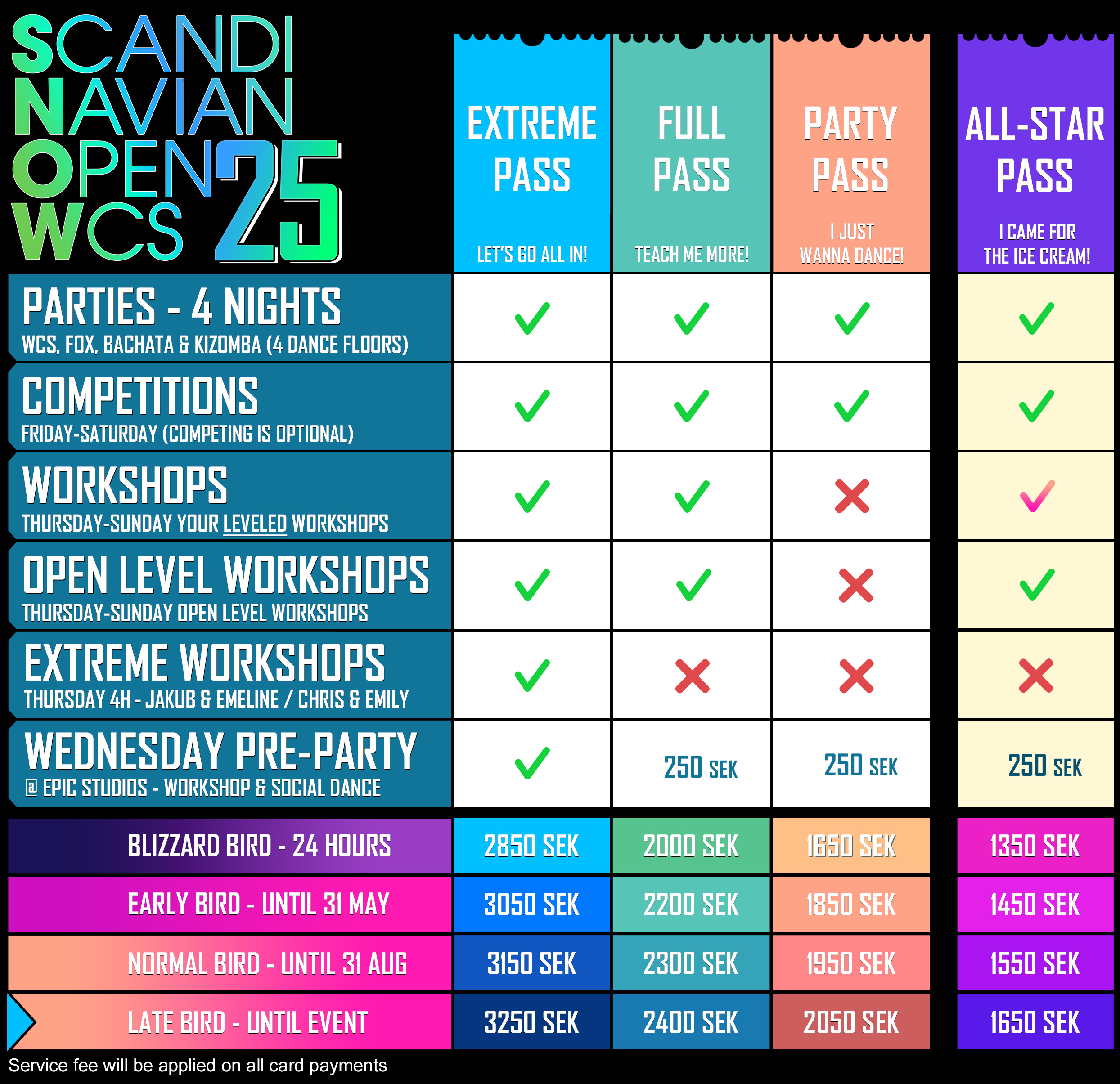 Scandinavian Open WCS reserves the right to change instructors and schedule if necessary.